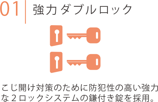 玄関ドアは2度の施錠と鍵穴を離すことで、より強力に不正解錠を防止。