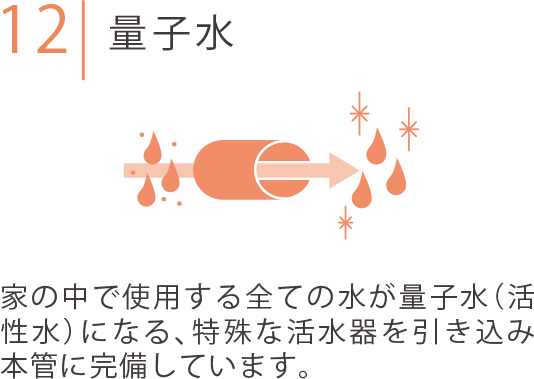 活水器を通った水は酸素や炭酸などを含んだ「量子水」になります。静菌効果や界面活性力の高い安全性が特徴です。またメンテナンスや電気代も不要なので、家族にも家計にも優しいお水が作れます。