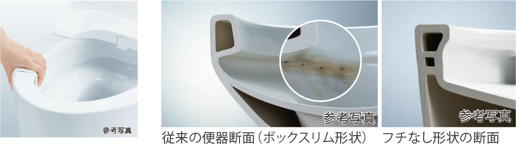 奥までぐるーっとフチがないから、サッとひとふき、お掃除ラクラクです。