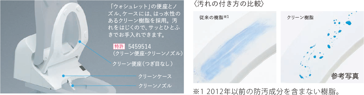 便座と「ウォシュレット」本体との段差が小さく、すっきりひろびろと感じられる便座です。