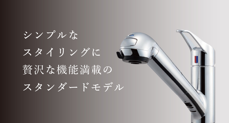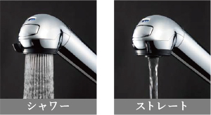 前面のプッシュボタンを押すと浄水/原水が切替わり、レバーをスライドさせるとシャワー/ストレートが切替わります。