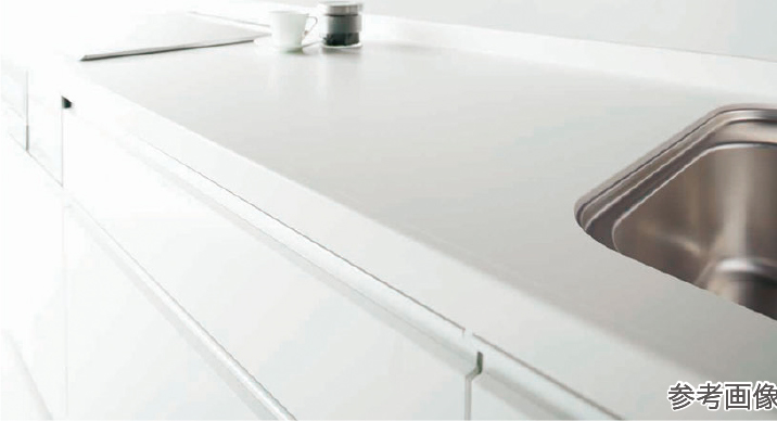 明るく清潔感のある人造大理石天板は、シャープな水返し形状を採用したスタイリッシュなカウンターです。しつこい汚れも洗剤、溶剤、クレンザー等で簡単に除去できます。