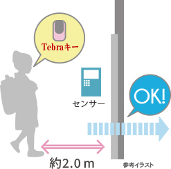 風除室自動ドアでは、非接触キータグをリーダーにかざして開錠ができます。