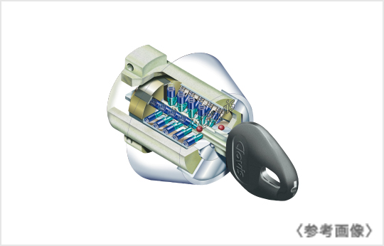 特異形状のアンチピッキングパンを使用し、5兆5千億通りの鍵違い数を持つピッキングが困難な錠前。不正複製もほぼ不可能、破壊にも強く安心です。使いやすさも考慮し、鍵は軽量で持ち易い形になっています。