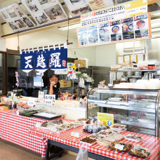 県内最大級の大型定置網が設置されている都屋漁港沖。その漁港内では、鮮魚直売店もあり、その日に水揚げされた新鮮な魚の刺身や、天ぷらなどが、また2階レストランでは海鮮丼や魚汁などを楽しむことができます。
